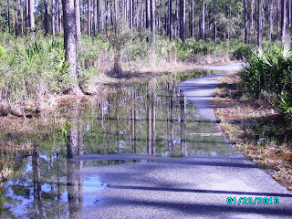 On the return trip we took the paved Woodpecker Trail. We found sections of this trail under 3-4 inches of water in some low lying spots.